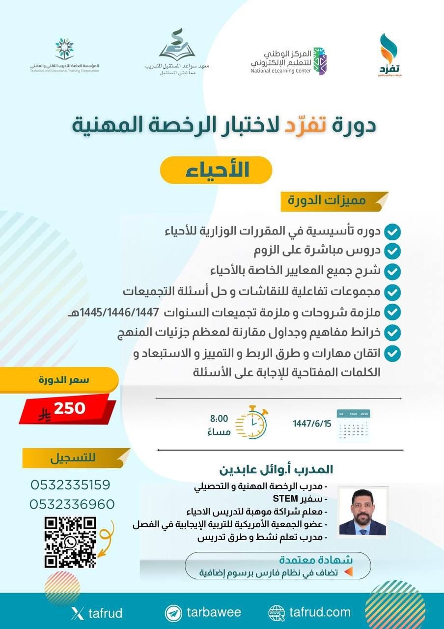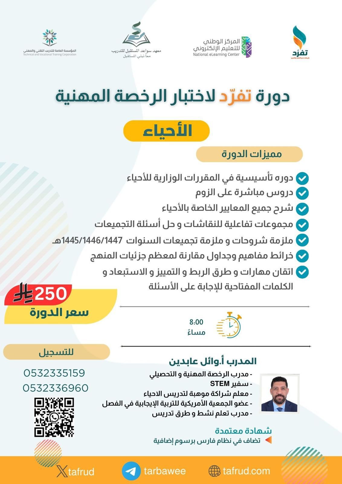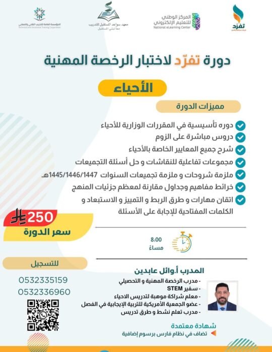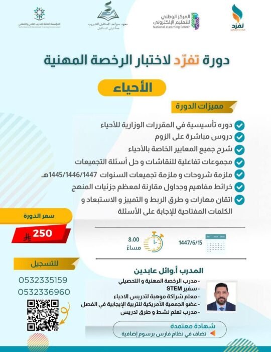 -شرح جميع معايير الرخصة المهنية -أكثر من 60 ساعة تدريبية مباشرة علي الزوم -مجموعات تفاعل...