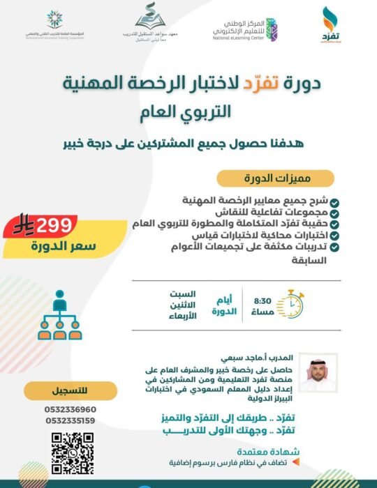 منصة تدريب إلكترونية معتمدة ومتخصصة في تأهيل المعلمين والمعلمات لاجتياز اختبار الرخصة المهنية بكفاءة واحترافية.